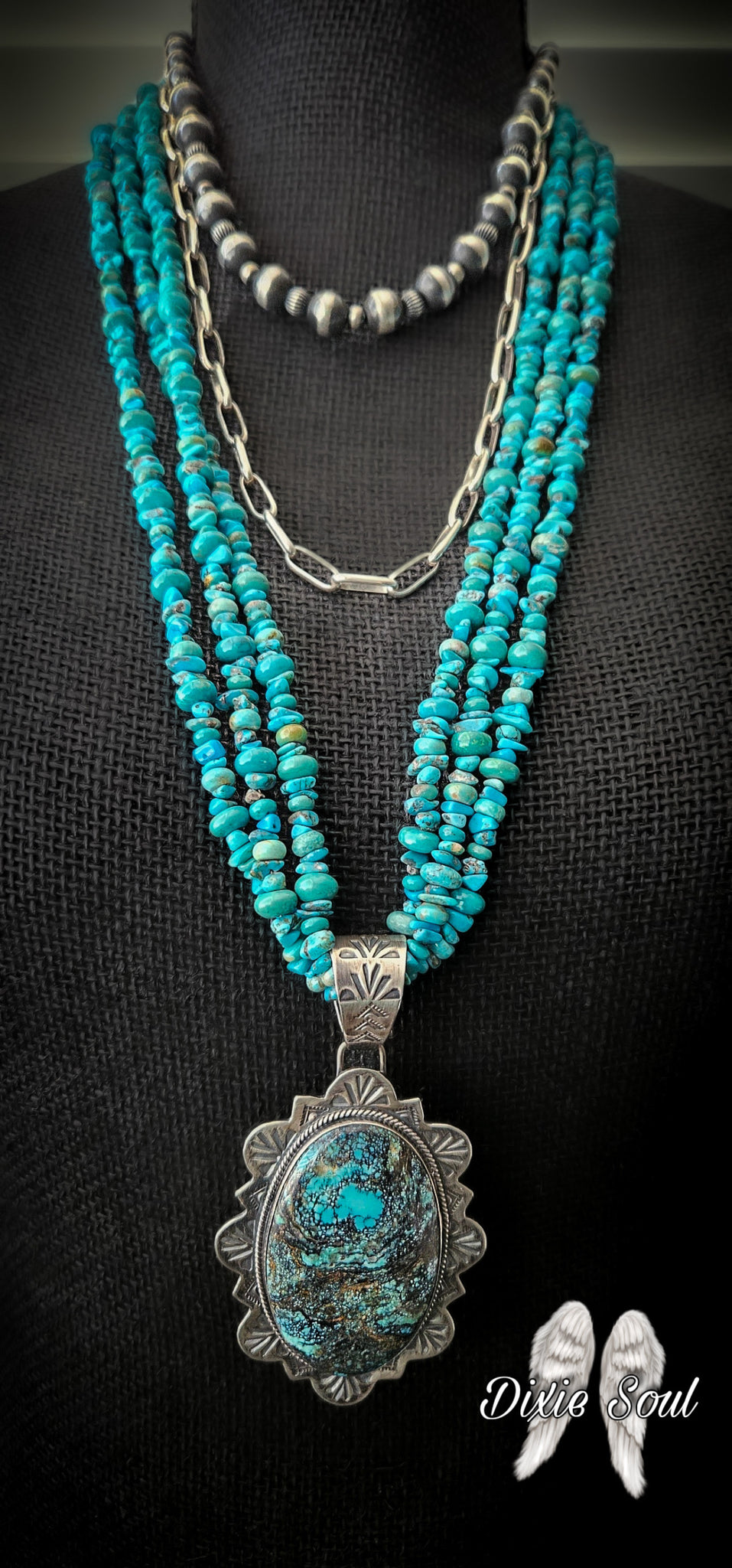 Three Strand Turquoise: 30” three strand turquoise necklace $399.