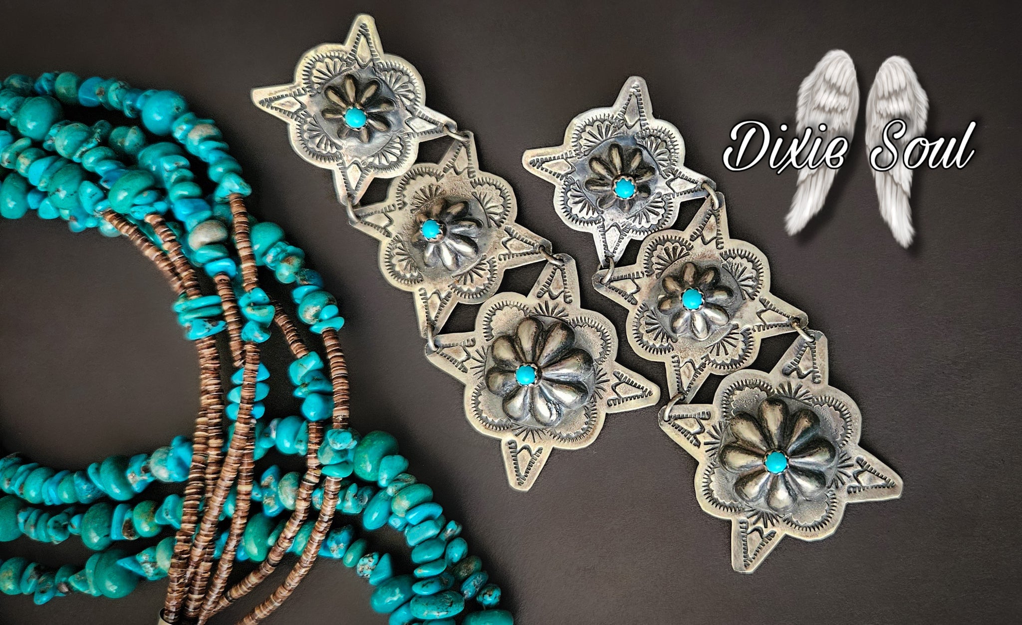 3 Concho Earrings: sterling postback with turquoise centers $240