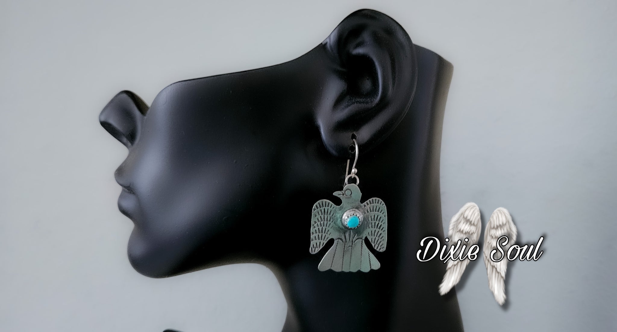 Thunderbird Earrings: sterling with turquoise centers $144