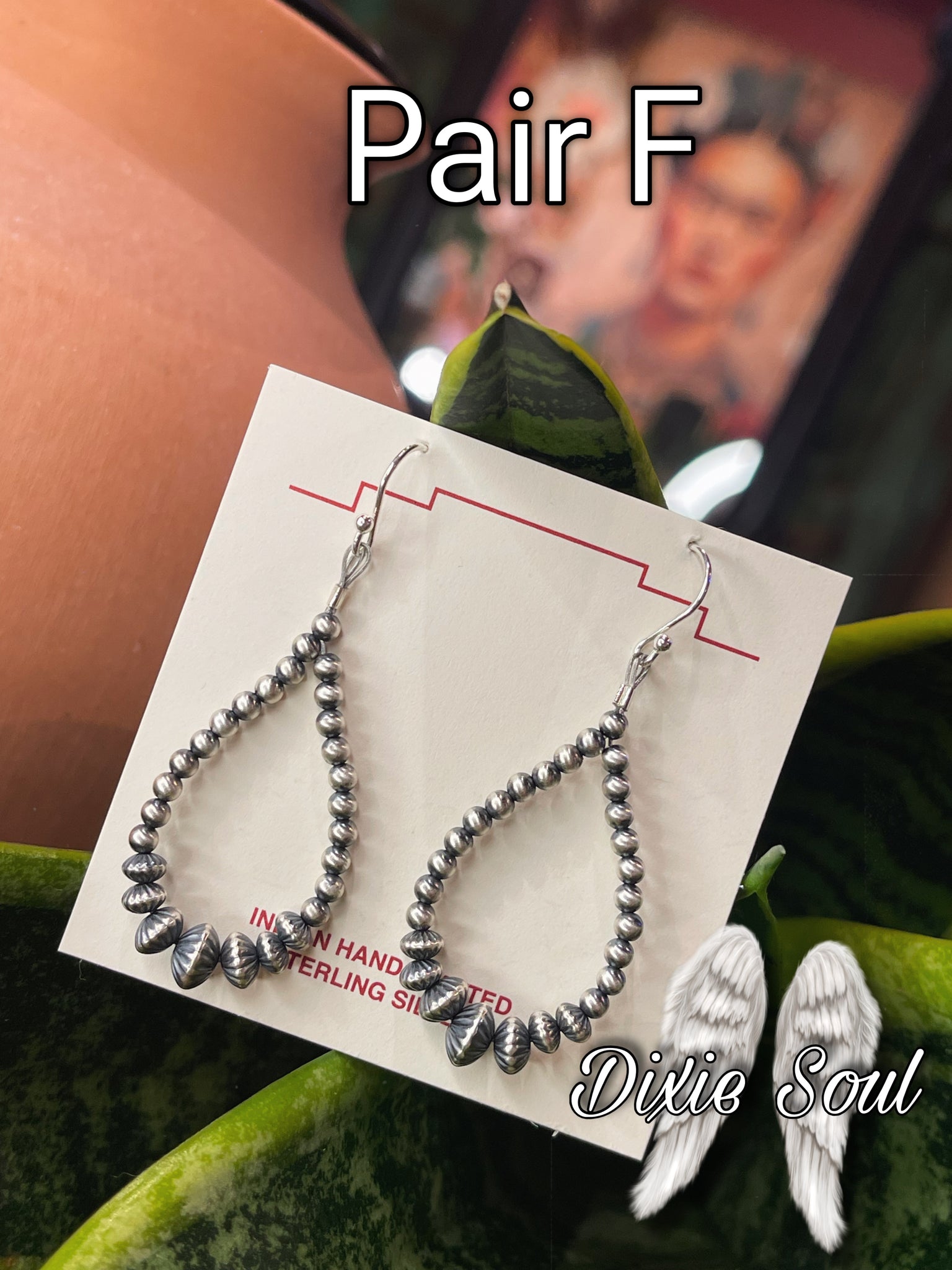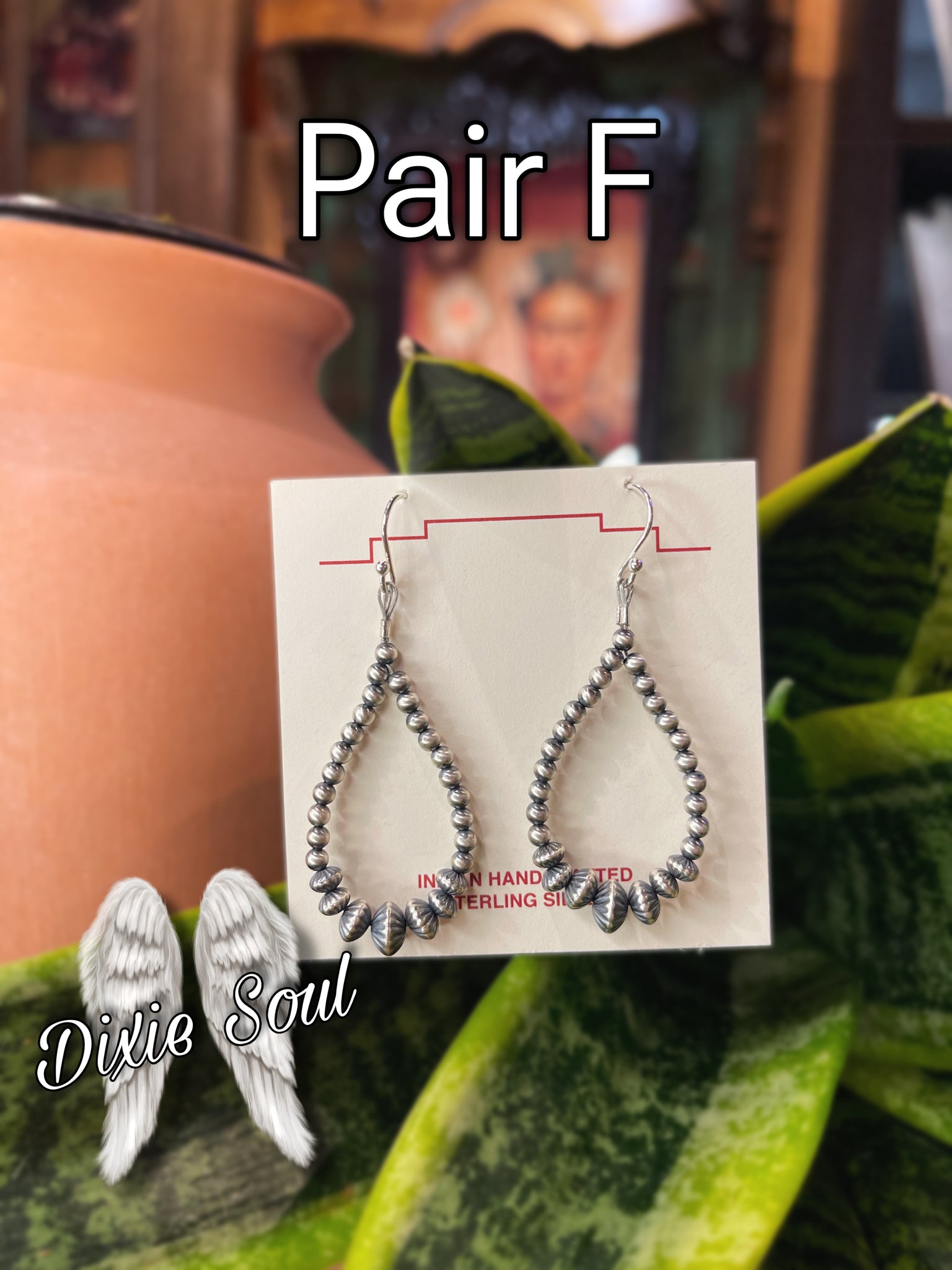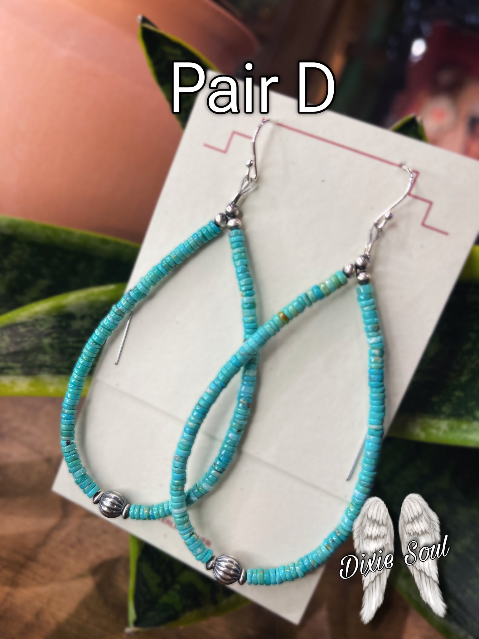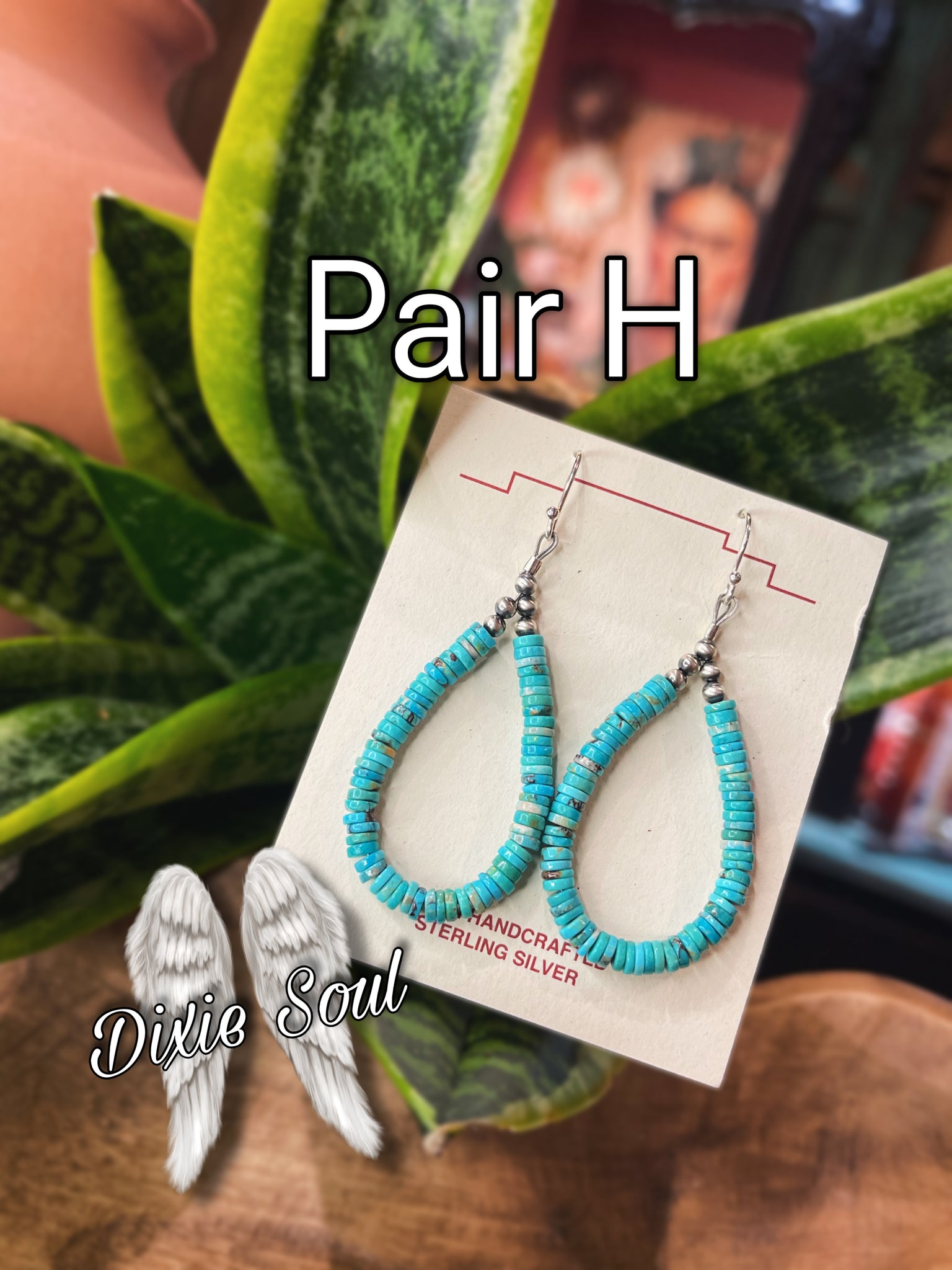 Pair H : 2.5” Mainly all turquoise with a few 3mm sterling upper pearls. $84