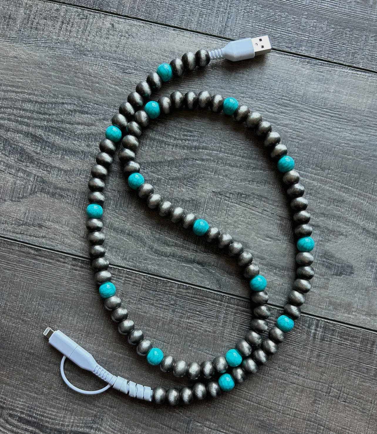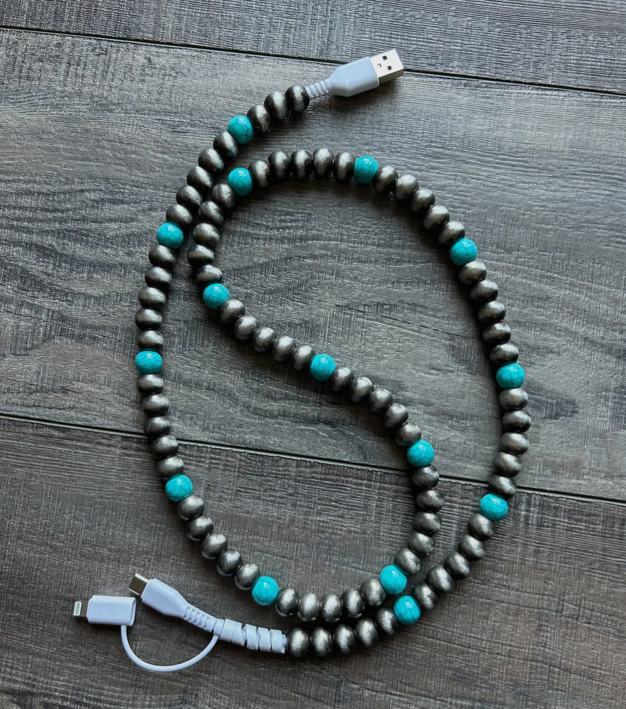Upgrade your charging game with this stylish Beaded Phone Charger, a perfect blend of function and fashion.