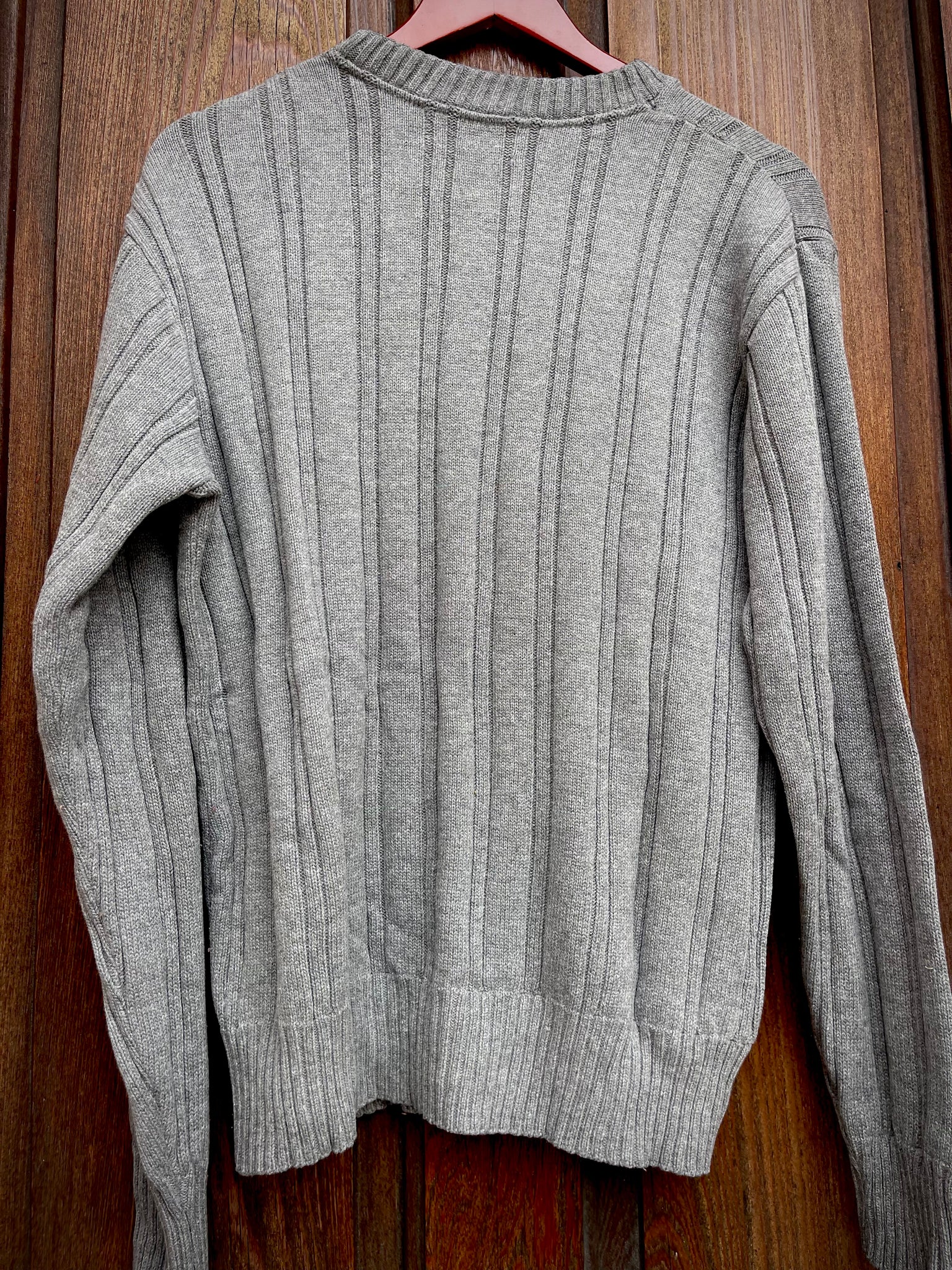 The acid washed process causes a unique color fading and darking process. Color variation will vary from sweater to sweater. Distressing will also vary. Bust measurement is provided, other measurements available upon request.