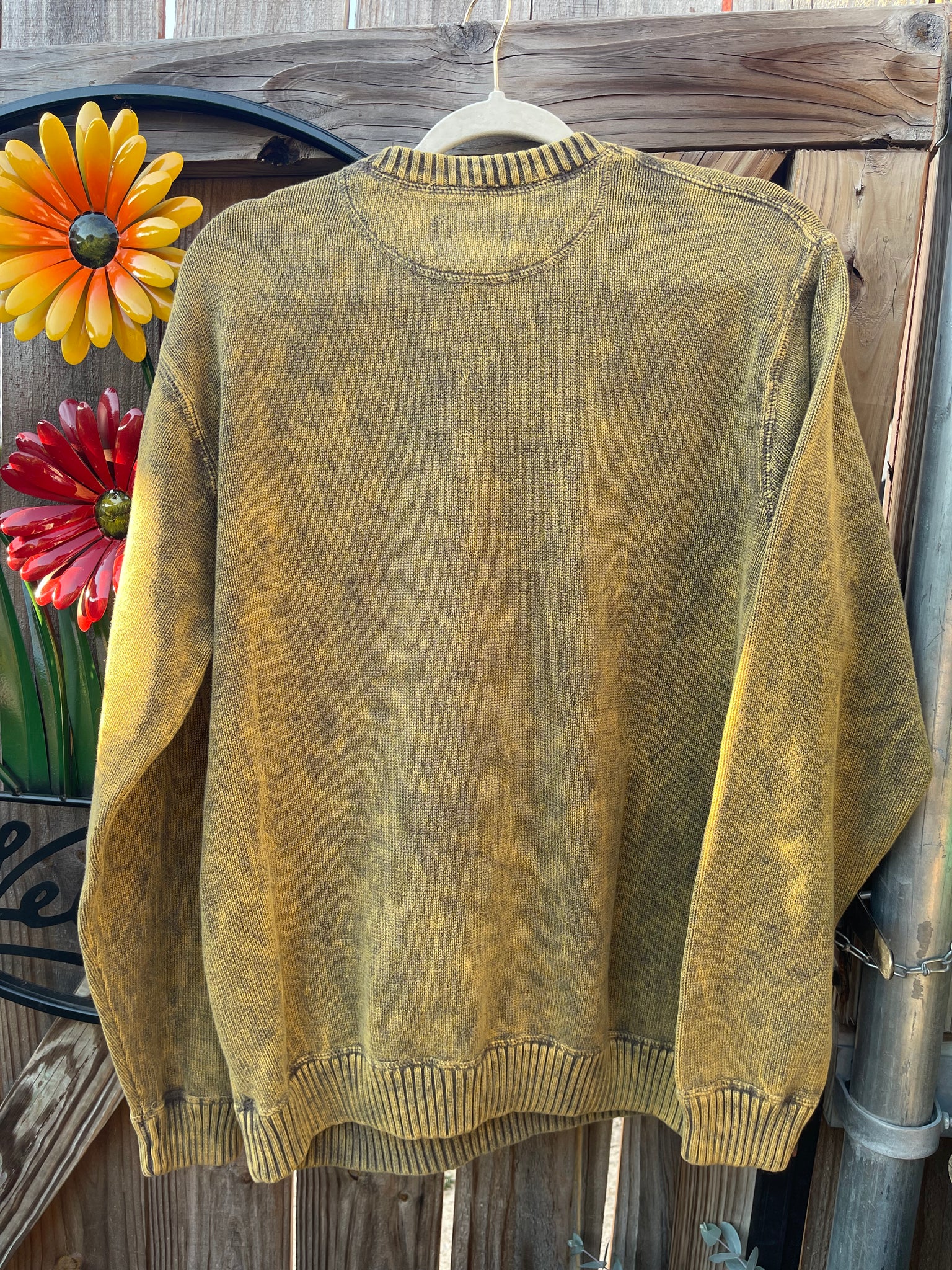 Recycling/restyling at its best. Our ‘new’ sweater collection at Dixie Soul, takes older & vintage sweaters, acid washes them, and creates a new life. Made up of various brands, textures, weights and sizes. While most will have an oversized fit, bust measurements are as follows. Each sweater will vary. Bust size 24” across front or 48” bust circumference. This is an un-stretched measurement.