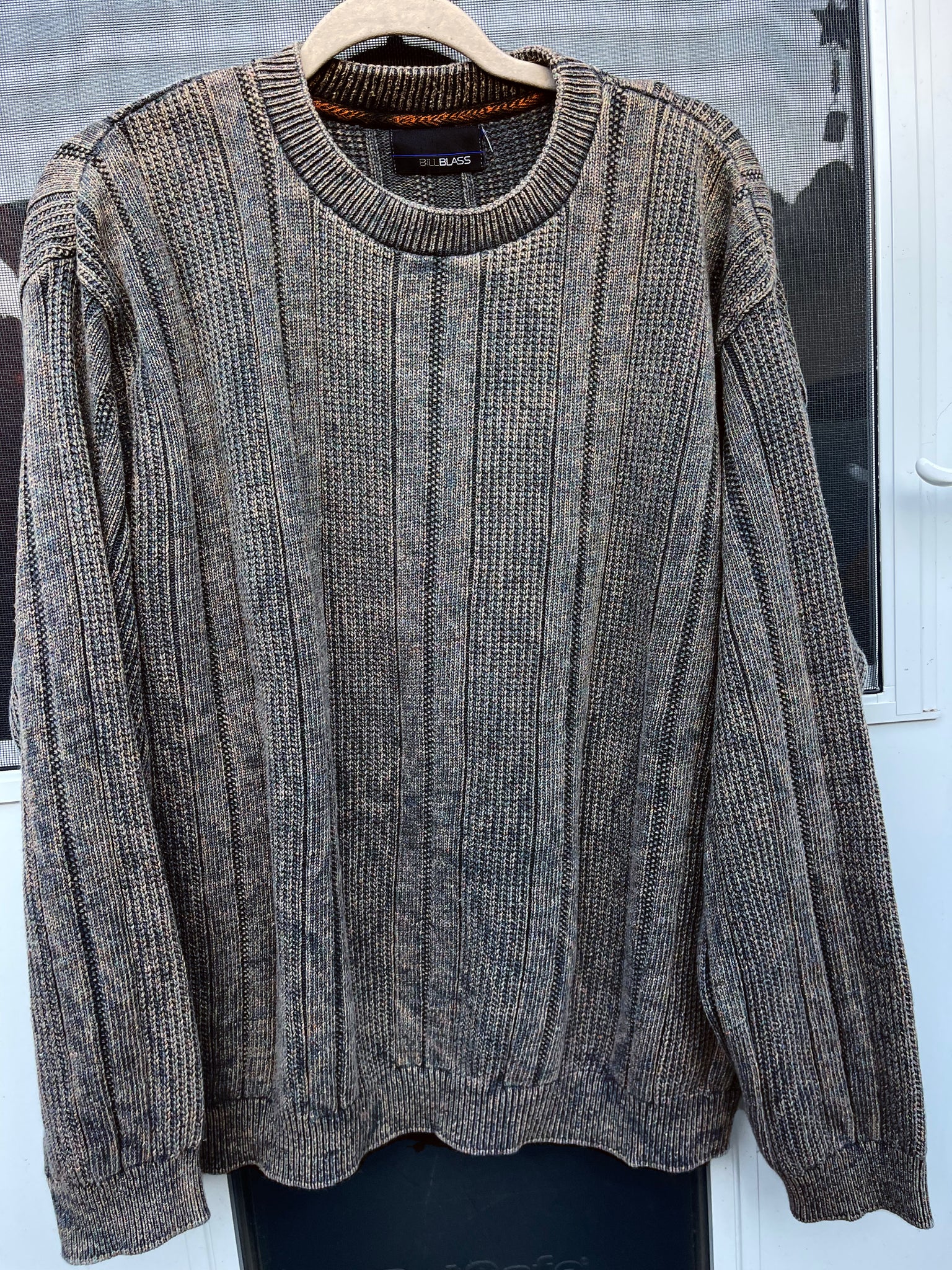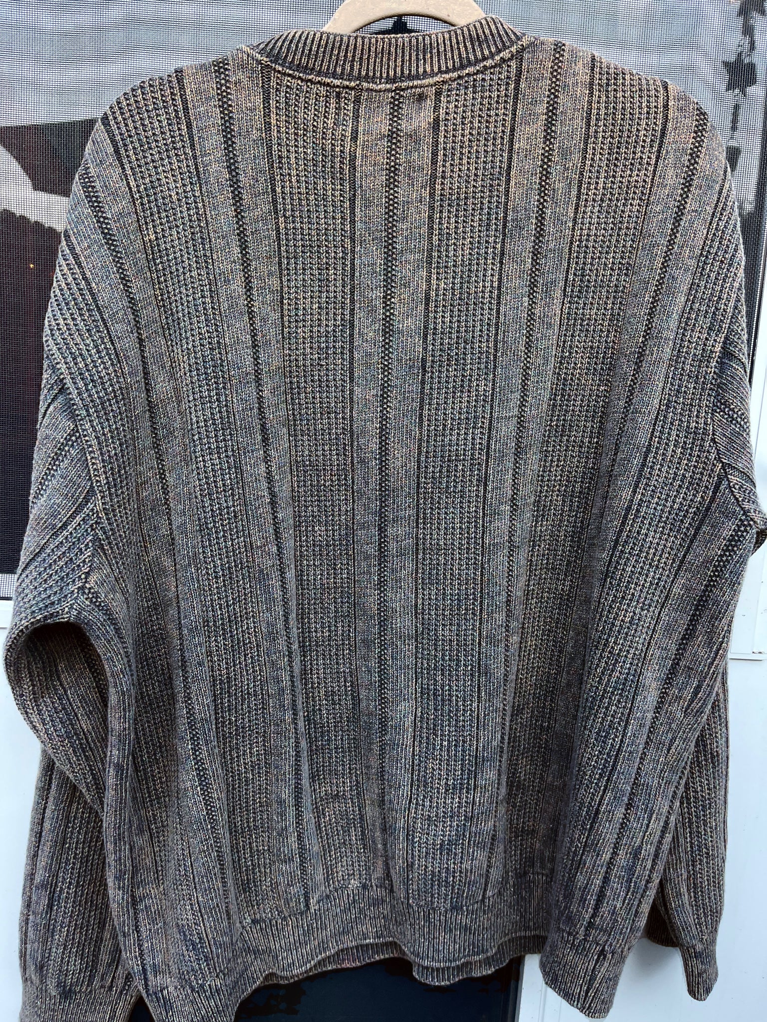 The acid washed process causes a unique color fading and darking process. Color variation will vary from sweater to sweater. Distressing will also vary. Bust measurement is provided, other measurements available upon request.