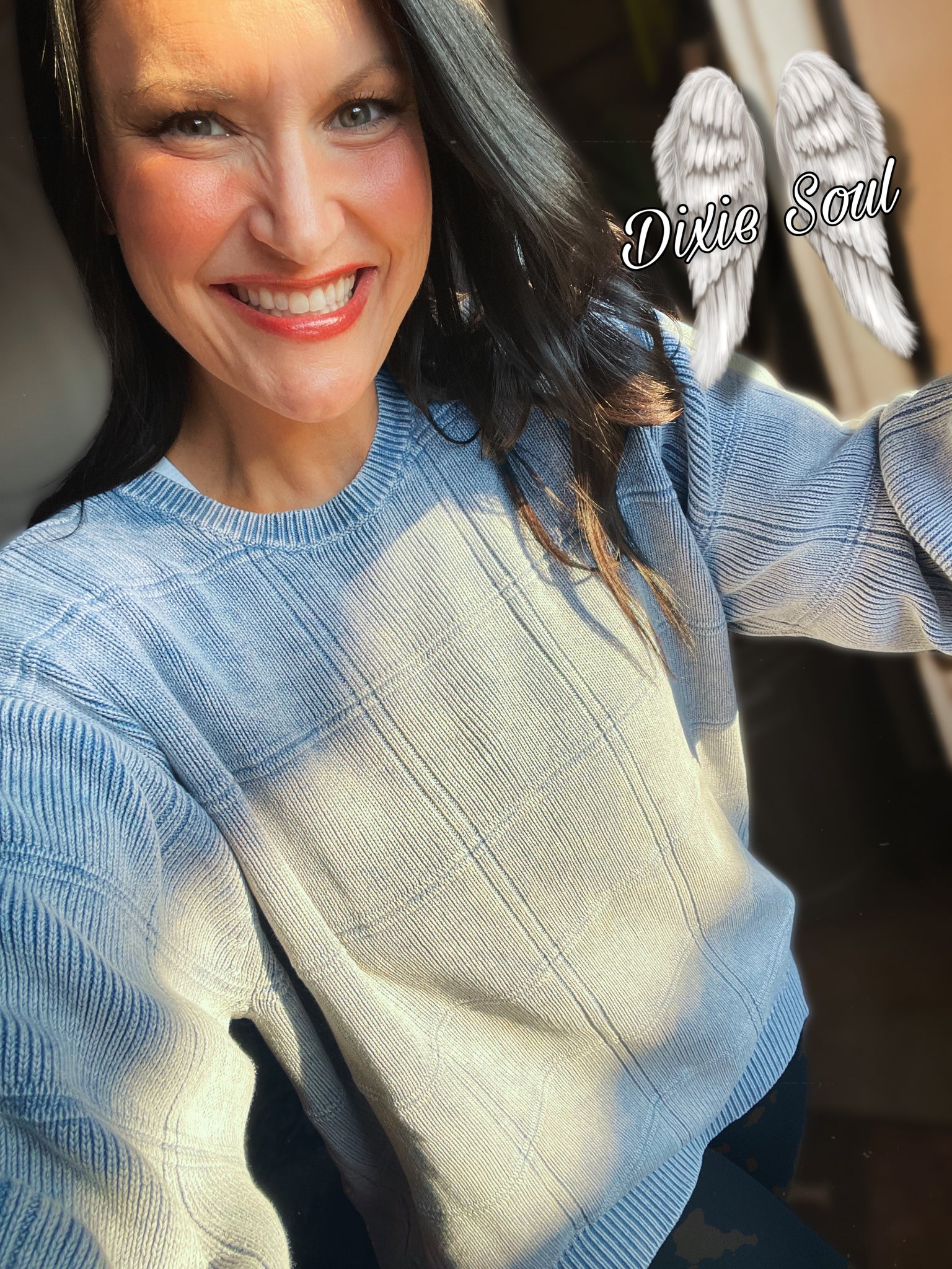 Recycling/restyling at its best. Our ‘new’ sweater collection at Dixie Soul, takes older & vintage sweaters, acid washes them, and creates a new life. Made up of various brands, textures, weights and sizes. While most will have an oversized fit, bust measurements are as follows. Each sweater will vary. Bust size 26” across front or 52” bust circumference. This is an un-stretched measurement.