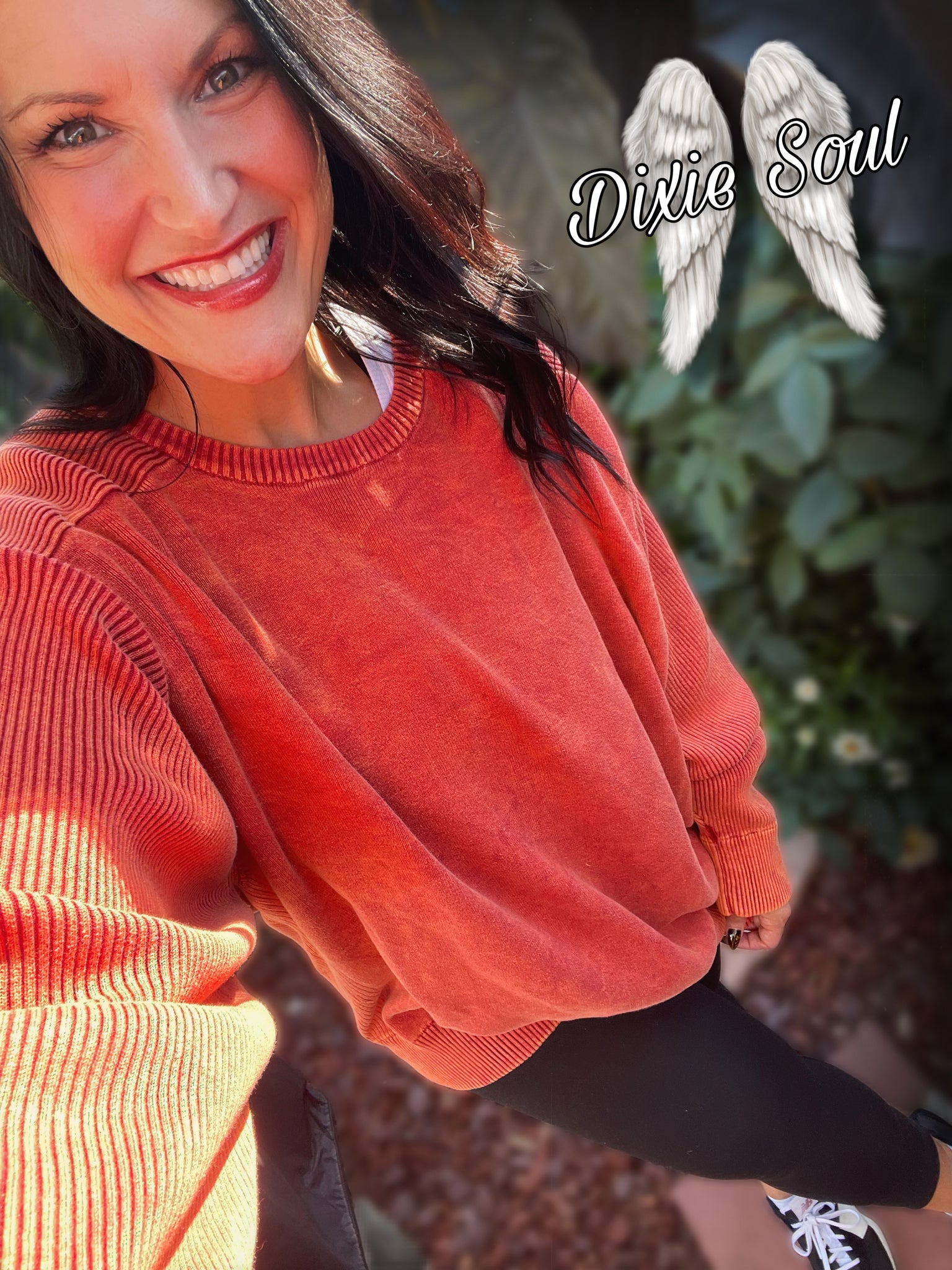 Recycling/restyling at its best. Our ‘new’ sweater collection at Dixie Soul, takes older & vintage sweaters, acid washes them, and creates a new life. Made up of various brands, textures, weights and sizes. While most will have an oversized fit, bust measurements are as follows. Each sweater will vary. Bust size 29” across front or 58” bust circumference. This is an un-stretched measurement.