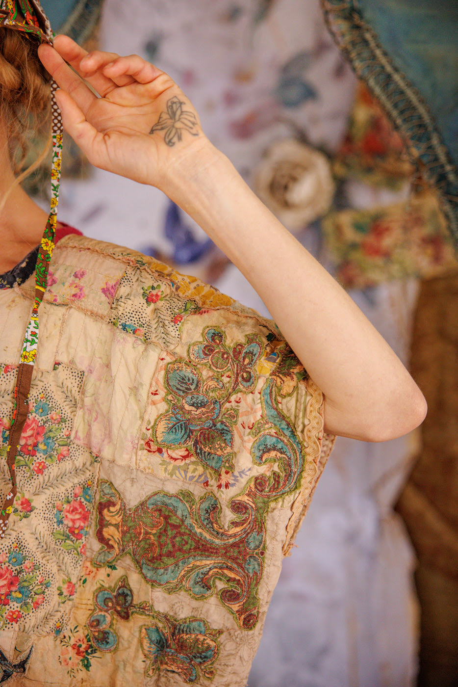 European Cotton with Applique | Tattered Lace | Hand Fading and Mending