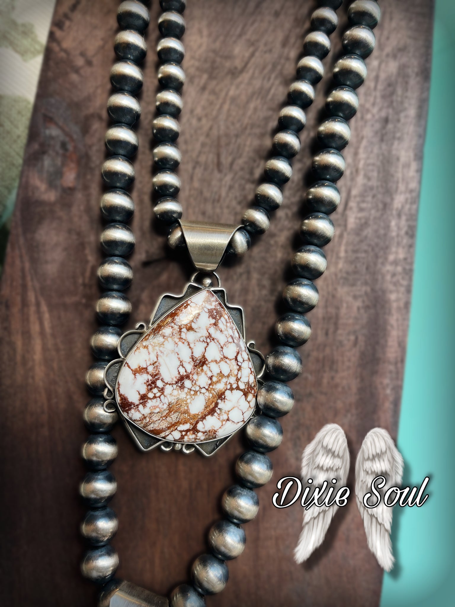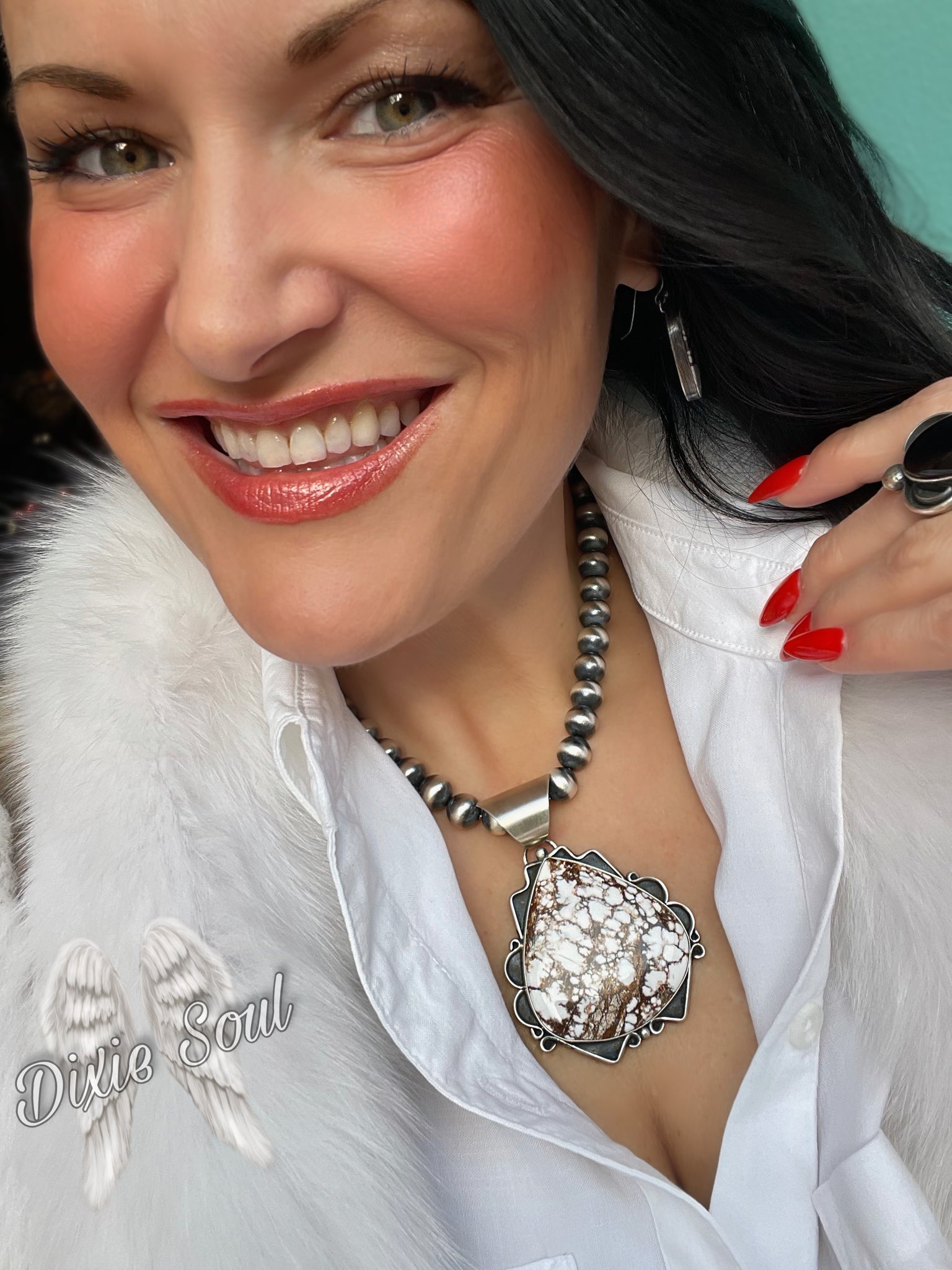 Wild Horse Tear Drop Pendant set in sterling. Measures 3” long by 2” wild (including bale) Signed $450